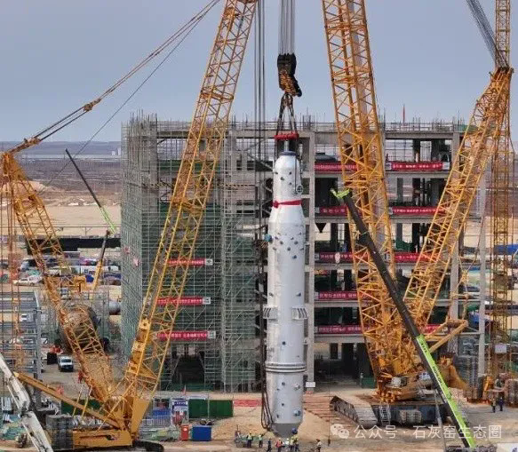 2025年4月15日,在金风绿能化工(兴安盟)有限公司“绿氢制50万吨绿色甲醇项目(一期25万吨)”项目施工现场,全球首个大规模高压气流床生物质气化炉吊装成功!