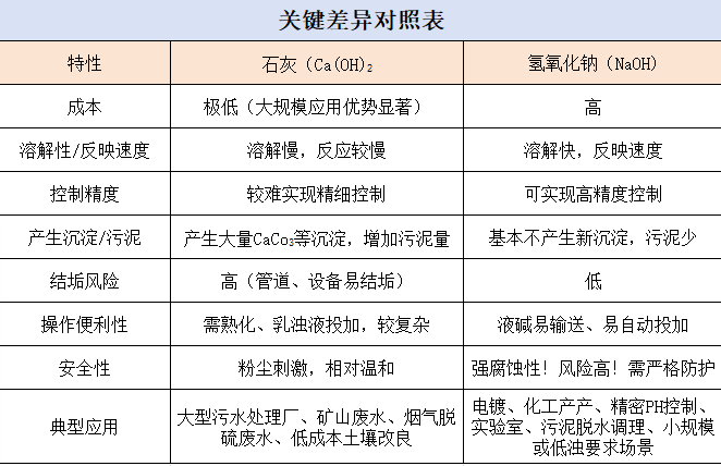 1.处理规模与成本敏感度: 量大、预算紧?石灰是王道。量小、精度要求高?氢氧化钠更合适。